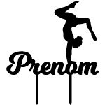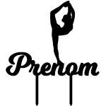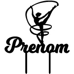 Notre cake topper gym est composé d'un prénom personnalisable, surplombé par une gymnaste dansant avec son ruban de GRS.